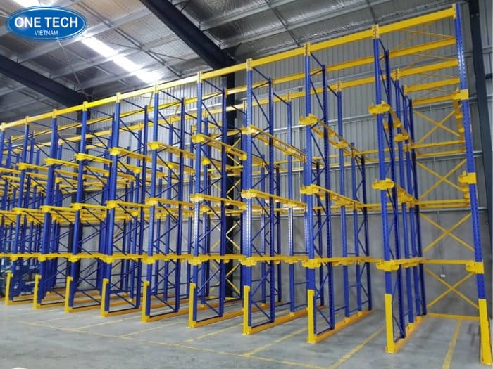 2.5. Kệ Push Back – Kệ pallet 3 tầng hiện đại