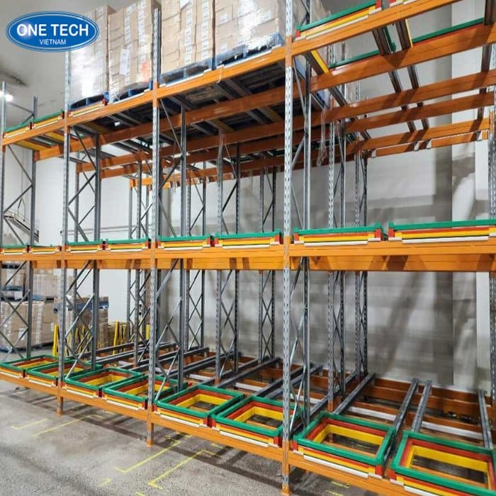 2.6. Kệ con lăn giúp các pallet tự động trượt