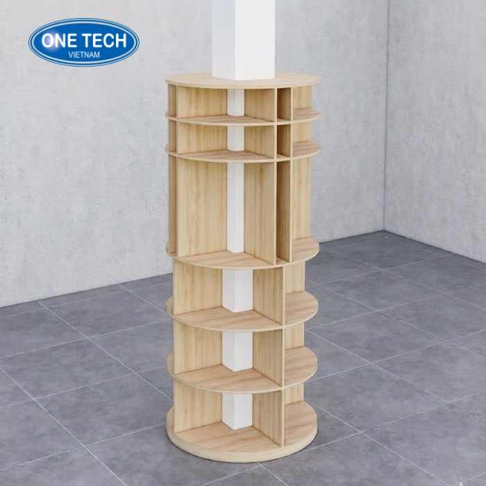 Kệ tròn trưng bày ốp cột trụ chất liệu gỗ